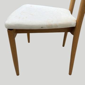 Condition: Good vintage condition. Upholstery needs cleaning or replacement. The back of the chair shows some scuffs and marks – see photos.