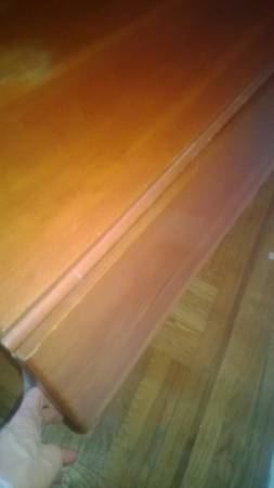 Beautiful, beautiful, 7FT farm table with 2 - 7" extensions. It measures 7ft. long. Width is 29" w/o extensions - with extensions 43" wide. It does have minor imperfections /damages on the top and legs- they look worse in the photos than they actual are. It is a beautiful table even with the slight imperfections on the top - which are minor . If you have any questions please ask. Calls/texts only- no emails. Thank you.