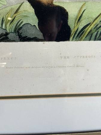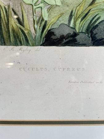 Vintage J. Julter The Cupreous Cuckow framed lithograph is in great shape. This can be used as is or have it reframed. This measures 23.5”w x 27.5”h.