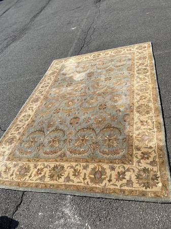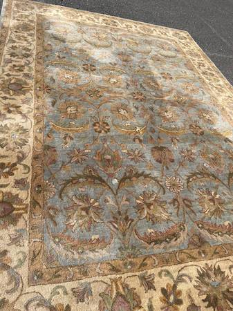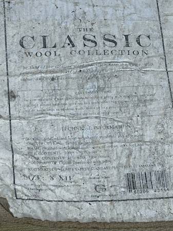 Vintage light blue and cream 8' x 11' wool area rug is in good shape. This is 100% wool with the tags still. This could use a cleaning but has been vacuumed. This would make a great addition to any space.