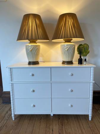 Visual characteristics matches with many vintage Lenox Masterpiece Collection porcelain table lamps and the Art Nouveau style Chapman lamps. Style could be described as Hollywood Regency / classic luxury décor.