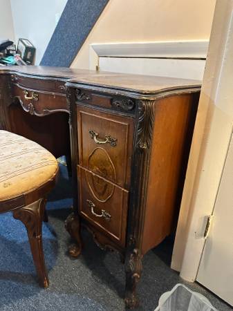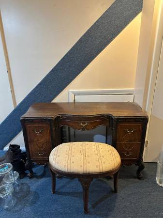 Antique desk with mirror and bench 48 inches wide 17 1/2 inches deep 30 inches high