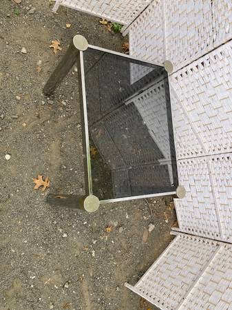Vintage mid century modern chrome and smoked glass end table is in good shape. This is made of blown metal with a chrome finish. This has little surface rust which can be cleaned up. This measures 27”w x 21”D x 20.5”h.