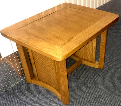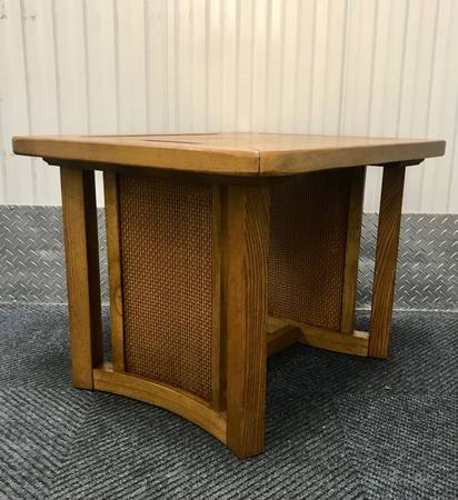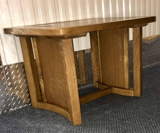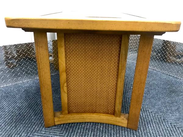 Condition: Some dark spots on one of the rattan side panels, but nothing that can’t be taken care of with a little TLC, and some slight rippling at one of the corners of the top insert panel (see last photo). No obvious cracks, nicks, burns or scratches. Overall, in very good pre-owned condition. Comes from a smoke-free, pet-free home.