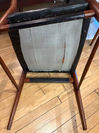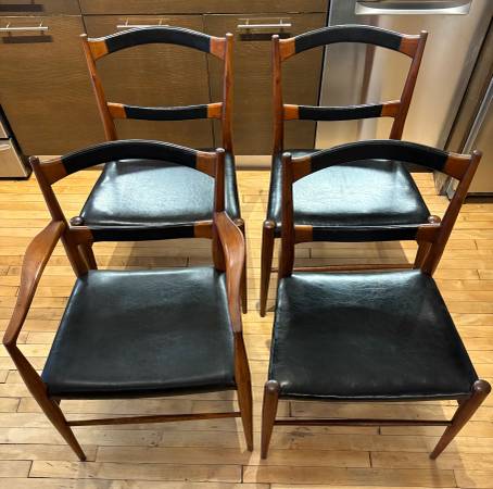 4 Vintage Teak + Leatherette Wrapped Mid-Century Modern Dining...