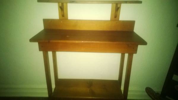 Beautiful, beautiful, vintage 3 tier pine stand. It measures 48” high and 36” wide. The bottom shelf is 11 1/2 “ deep middle shelf 14” deep and the top shelf 5” deep. If you have any questions...