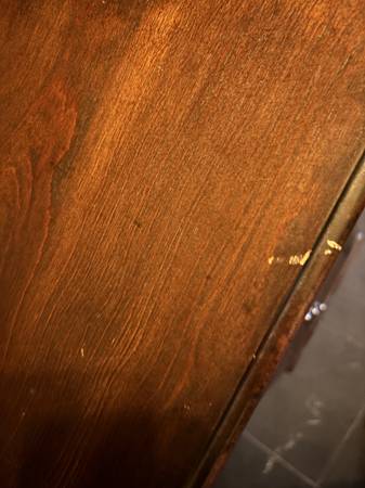 It is a vintage piece so there are some scratches on the top and front and one of the back legs is slightly loose (but the piece is structurally fine).