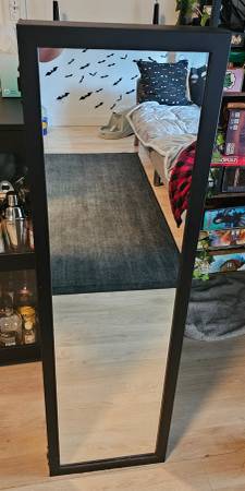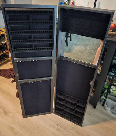 Wall-mounted mirror with internal jewelry storage, used but in great shape with screws included.