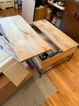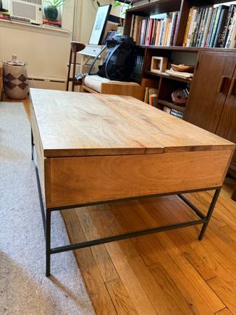 Selling the 36” wide mango wood West Elm industrial coffee table with storage. Originally $700, see here: https://www.westelm.com/products/industrial-storage-pop-up-coffee-table/