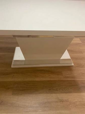 Dining in style just got a whole lot brighter! This high-gloss white table is the perfect centerpiece for your culinary adventures. The smooth, reflective surface is practically begging for candlelight and laughter to complete the picture.