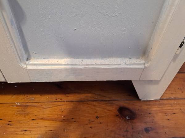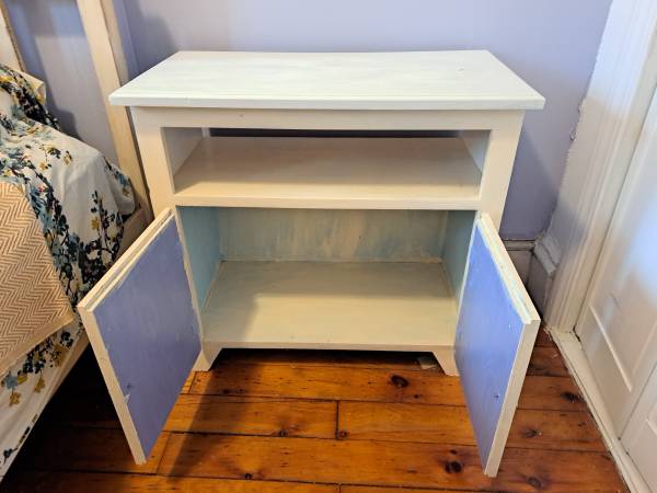 Wood Cabinet w/ Two doors and an Open Shelf. Sturdy and functional! 31" wide x 16.5" deep x 30.5" high. $30. CASH ONLY.