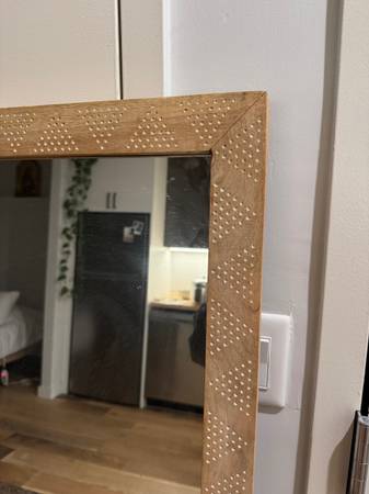 In like new condition, no real signs of wear. Wooden frame with carved details. Measures 20 inches x 60 inches.