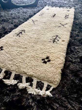 Beautiful white wool runner. There’s a couple of discolorations that will come up with a steam clean.