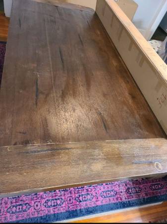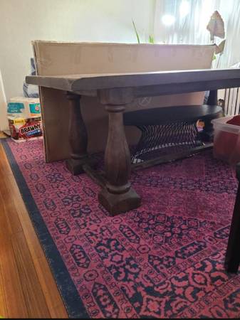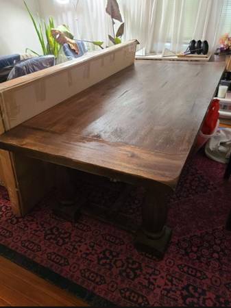 World Market Super Sturdy Wood Dinning Table DELIVERY AVAILABLE NEGOTIABLE ON PRICE Dimensions: L:86in x W:39.5 x H:30in Also see more of our furniture for sale by looking at the purple “see more...