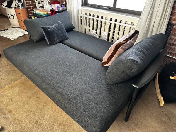 Una Sleeper Sofa black. Originally $1,699. In good conditions. Some small marks on the wooden frame. Barely used. Easy to assemble and use.