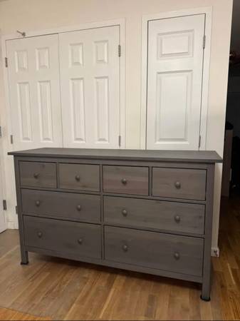 REAL WOOD IKEA HEMNES 8-drawer dresser, dark gray, 63x37 3/4" (Retail price $450). I have other matching dressers in different sizes. X2 8 drawer dresser ($300 each). X2 6 drawer tall dresser ($250 each). X1 3 drawer dresser ($200) X5 3 drawer nightstands ($125 each). Everything in great condition, ready to go. This dresser is in very good condition, looks and feels like new. Please check the pictures for more details. Thank you.