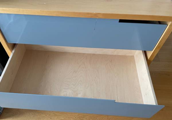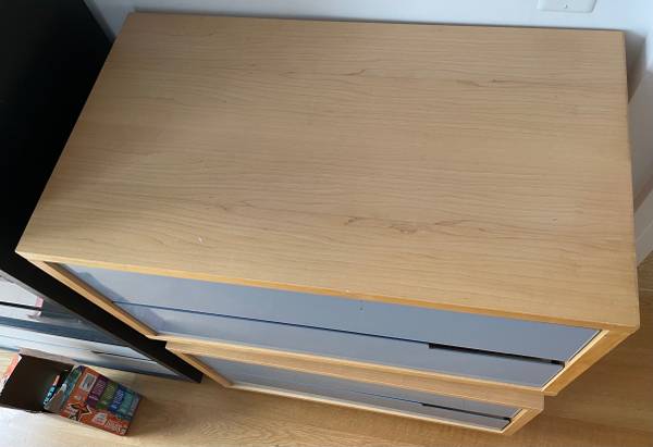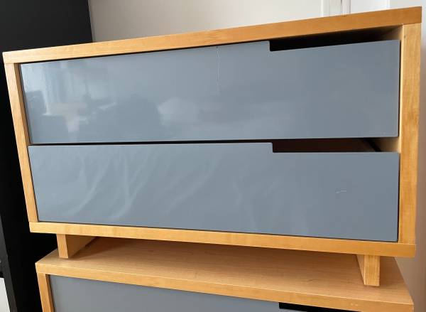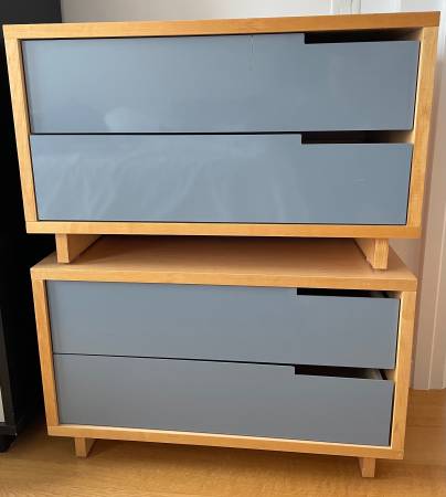 Selling these Blu Dot Modulicious Number One nightstands. Comes assembled, ready to be picked up. You may also stack them on top of each other to make it a tall dresser. You’ll notice one scratch on the paint of the steel drawers, other than that, looks great. Everything still functions like day 1.