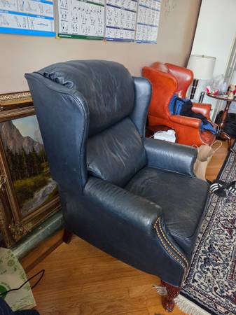 Hello, selling my beautiful real leather armchair English style ,super comfortable I'm 6.1 and it the right size for me ,bought it a few years ago for antique shop for 1k Selling just because we need something bigger. Here's a measurements Leigh 31//Width 27//height 41 ,call or text me show contact info