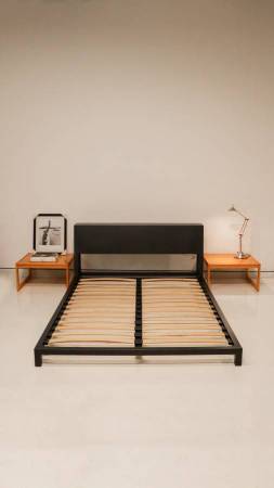 Discontinued by West Elm but it’s a solid frame. Low profile. Breaks down into multiple pieces so a truck or even Uber XL would work for delivery