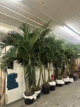 I have (8) 12ft tall Adonidia Palm Trees from Florida. (4) are triple stems and (4) are double stem. They are $550 each. You don't need to buy all and can choose the tree you'd like. All are in 25g pots and weigh about 300lbs. Delivery potentially available depending on location.