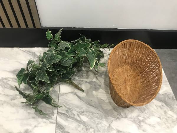 Or you could simply combine one ivy bundle with a shallow basket, as shown in the fifth photo, to create the indoor plant shown in the fourth and sixth photos. (The basket, shown in greater detail in the next photo, is listed separately but can be included for an extra $2 if you want. It has some separation at the bottom but works fine as a planter.)