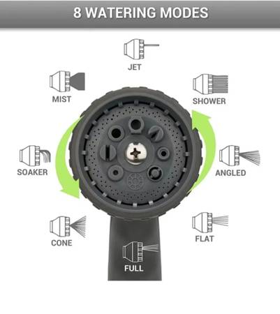 Garden Hose Spray Nozzle, Water Sprayer with 8 Adjustable Patterns, Impact Resistant and Non-Slip for Watering Plants, Car Washing, Pets Bathing and Cleaning