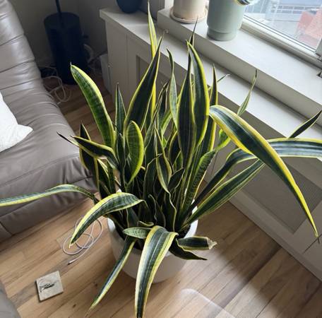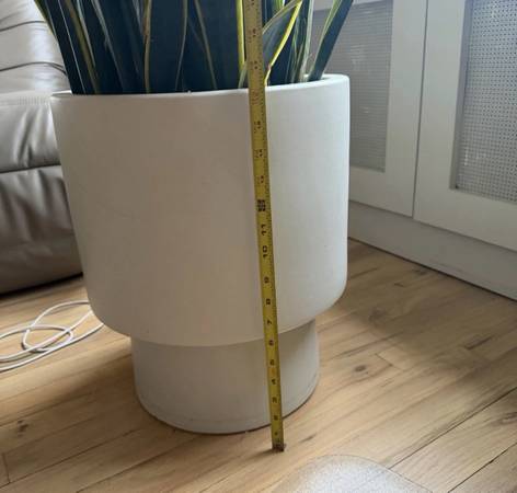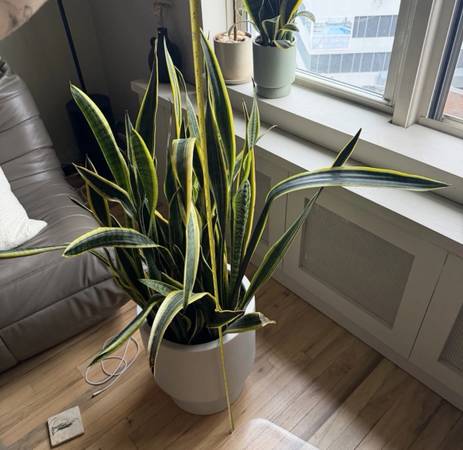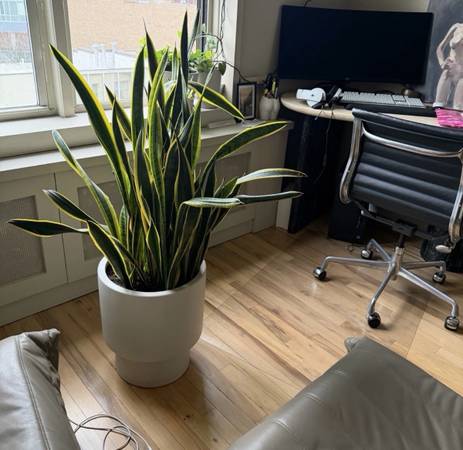 Giant Snake Plant in WEST ELM Alabaster Floor Planter Planter alone retails for $159