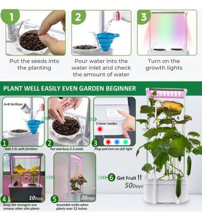 Growing System kit with Trellis,Smart Hydroponic Gardening System with LED Grow Light, Fathers Day dad Gifts, Indoor Hydroponic Herb Grow Kit for Short Tomato,Pepper,Cucumber (6200LC)