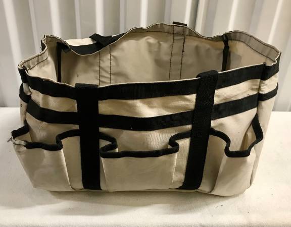 Great for gardening, but it also works great for organizing your craft materials (like yarns and needles) or your art pads and colors or your school notebooks and supplies. It also is a convenient shopping tote that keeps your shopping list, glasses, phone, etc all accessible.