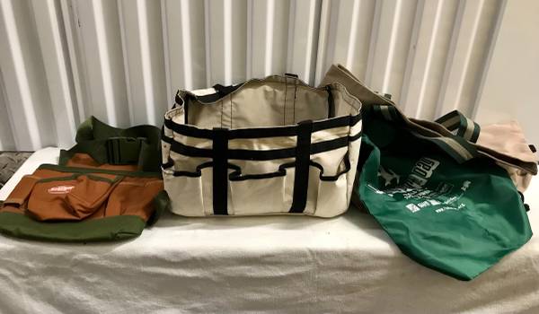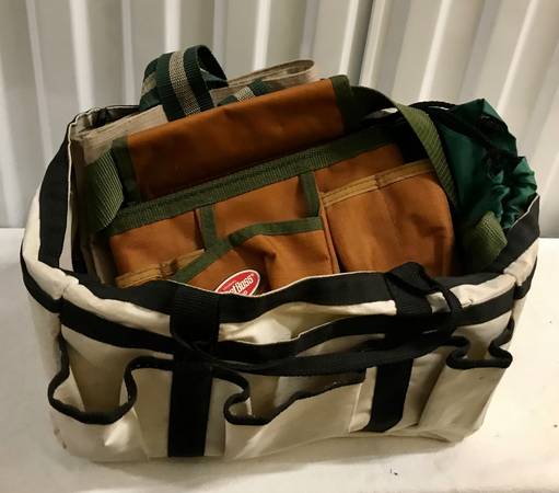 This lot includes 4 gardening/park related (mostly) canvas tool belts and totes/bags. All come from a smoke-free, pet free home. They are priced individually as listed, or you can get the whole lot for $25