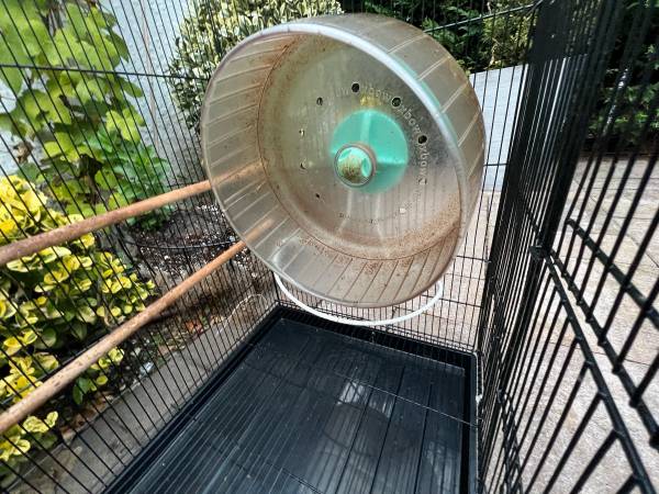 Bird cage, sugar glider cage Running wheel Large cage pickup or delivery for a fee Used but in good condition no damages