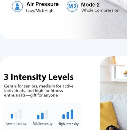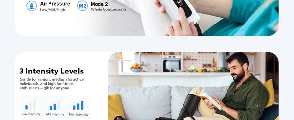 Custom Massage, Just How You Like It - Choose between 2 massage modes and 3 intensity levels to match your comfort. Whether you’re looking for gentle daily relief or a more invigorating compression after activity, the handheld controller lets you easily personalize your experience - it's like having your own massage therapist on call anytime