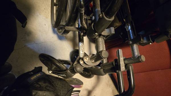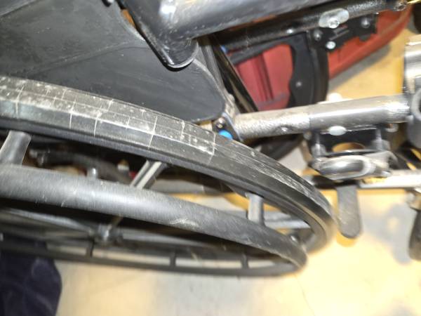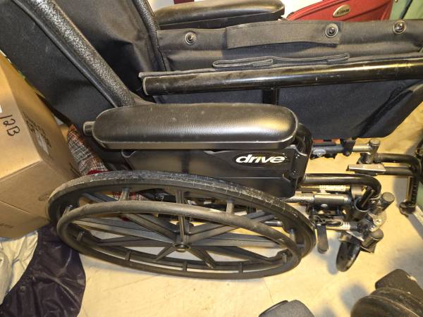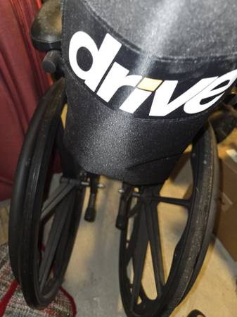 This wheelchair Drive Cruiser III is technically new. It's never been used prior, and it's been in storage since it arrived. It's minor dust in the photos. There is no damage to the best of my knowledge. It doesn't have the foot rest. It measures 2 feet across by width and length. Pick up prefer and my cell# show contact info