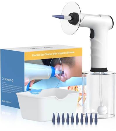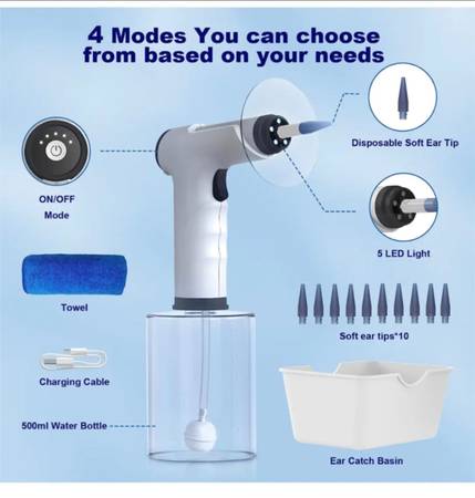 Electric Ear Wax Removal Kit with SoftSpray Safe and Effective Ear Cleaner with 4 Pressure Settings for Ear Wax Buildup Complete Ear Cleaning Irrigation Kit for Adults and Kids, Black