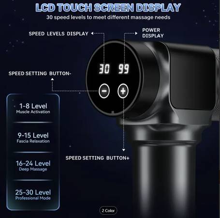 30 Adjustable Speed Levels: The updated version of the deep tissue massage gun has 7 speed levels: high, medium, and low, up to 3200rpm. Whether you want a light massage or a deep massage, you can easily find the appropriate amplitude to meet all your massage needs