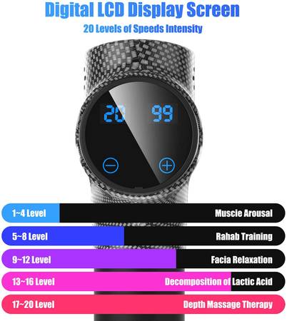EASY TO USE: LEGIRAL massage gun has a very easy-to-operate LED control, you can easily adjust the speed and vibration level. Equipped with a portable suitcase so that you can relax your muscles anytime, anywhere.