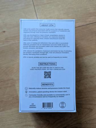 Brand new in packaging, never used, still has plastic wrap. Supposed to relieve inner ear pressure to prevent and assist with migraines.