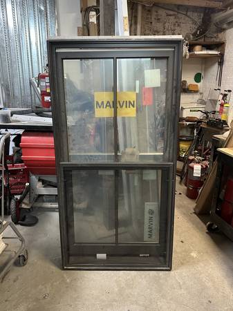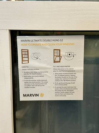 2 Marvin Ultimate Double Hung G2 Windows with black exterior, white primed interior, half screens, and noise-reducing glass.