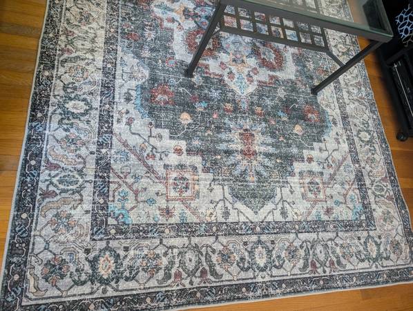 Pick up in Brooklyn ( Dyker Heights, 11228 ) cash only. Bought it about 2 months ago. This is a beautiful area rug with a floral pattern. The large glass coffee table is also available for sales for...