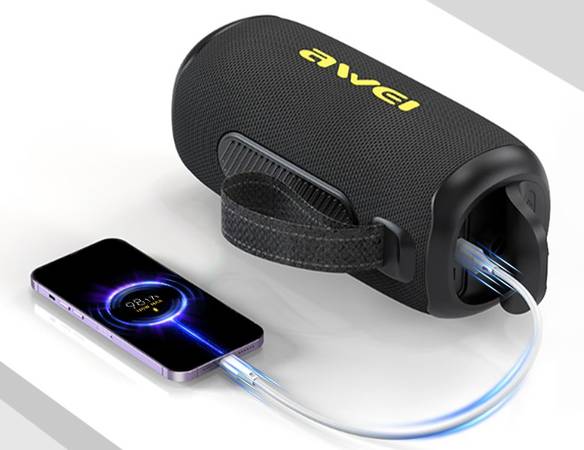 AUX/TF Card/USB Playback -- The AWEI Bluetooth Speaker is equipped with a powerful 3000mAh rechargeable battery. Insert the 3.5mm AUX data cable provided by the big speaker into your TV and laptop to play the audio at any time. Use a TF card and USB flash drives to enjoy different listening modes. Besides, the large capacity batteries of this outdoor speaker can be used as a power bank, easily charging the phone via a USB port.