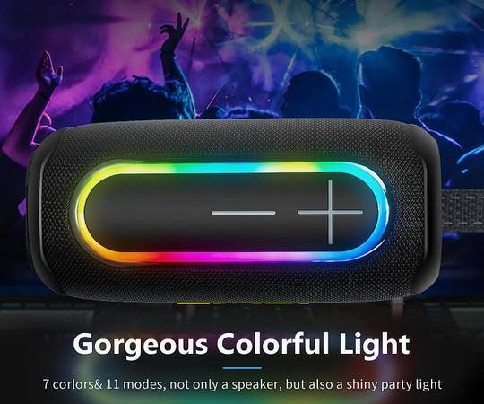 40W (Peak 60W) ASTONISHING SOUND AND RGB LIGHTS -- This portable speaker with subwoofer, tweeters and a large passive radiator to deliver incredible sound without any distortion, even at maximum volume. The dynamic with 11 colorful LED light mode show will groove to the music beats and occupy your field of vision to light up a hot party.