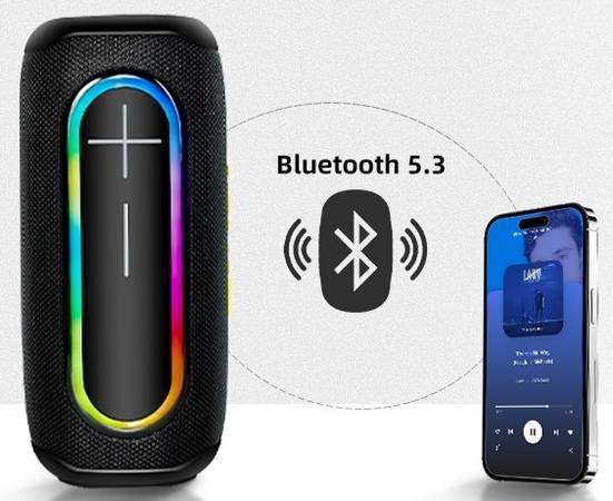 BLUETOOTH 5.3 & BUILD IN MIC -- Embedded with a Bluetooth 5.3 high-performance chip, supports a connection range of up to 33 feet and provides a more stable and faster connection. AWEI wireless speaker is compatible with any Bluetooth-enabled devices. The built-in microphone makes your calls loud and clear, as if talking face-to-face.