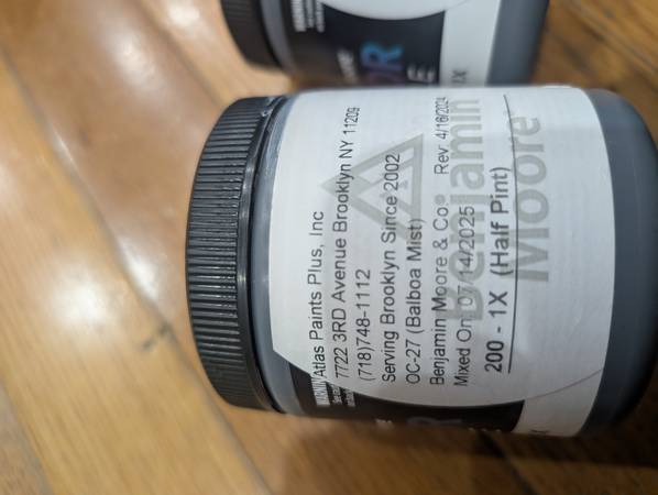 Pick up in Brooklyn (Bay Ridge, Dyker Heights Bensonhurst) Cash only. I have 6 different Benjamin Moore paint samples. All purchase July 2025. The colors are mostly gray and off white: