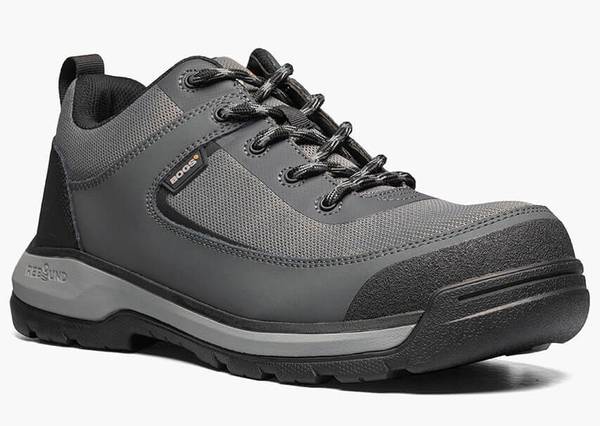Tough yet lightweight, the Bogs Men's Shale Low Safety Shoes (72672CT-062) offer all-day comfort indoors and out. Featuring BOGS Max-Wick™ and EverDry for moisture control, a BLOOM eco-friendly footbed, and DuraFresh odor-fighting technology. The BioGrip slip-resistant outsole and ASTM-certified asymmetric composite toes ensure safety and durability. Color Gray.