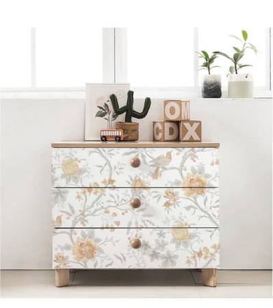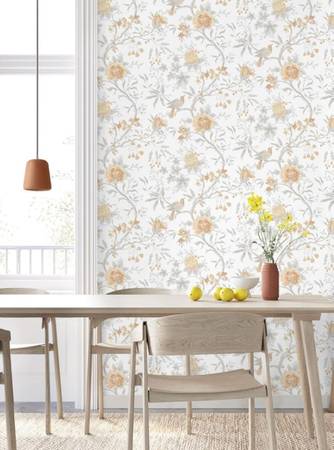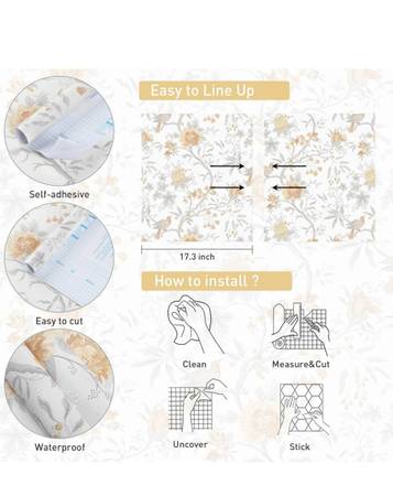 Boho Peel and Stick Wallpaper Yellow Floral Contact Paper Farmhouse Wall Paper Removable Self Adhesive Grey Leaf Wallpapers for Bedroom Laundry Room Cabinets 17.3" × 78.7"