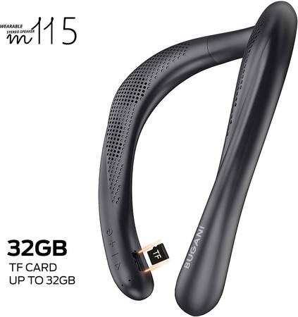 BUGANI M115 Explosive Bass - Wearable Portable Personal Stereo Wireless Bluetooth Speaker, IPX5 Waterproof, Bluetooth 5.0, Built-in Mic