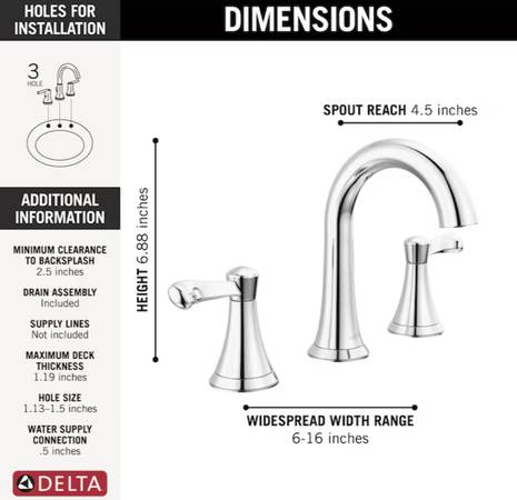 WIDESPREAD BATHROOM FAUCET: Fits 3-hole 6-16 inch widespread installations