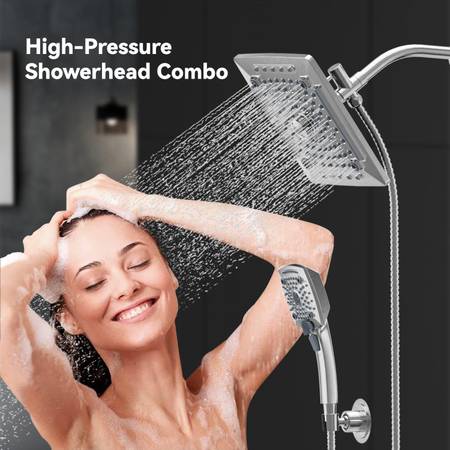 Rainfall Shower Head with Handheld Combo: Waterfall shower features oversized 10in. face with 5-settings include: Power Rain, Pulsating Massage, Power Mist, Waterfall, Rain and Massage. Allowing you to enjoy the perfect shower experience under the waterfall. The ball joint offering 360° rotation is made of brass. Compared to plastic ball joints on the market, our joints are stronger and do not crack or leak. Can be used in high pressure and high temperature environment.