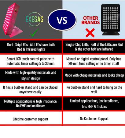 EXESAS Red Light Therapy Device for Full Body & Face, 660nm & 850nm, Near Infrared Dual-Chip Clinical Grade LED Panel for Beautiful Skin, Weight & Pain Management and Overall Wellness (300-Watts 60-LED).