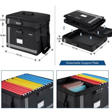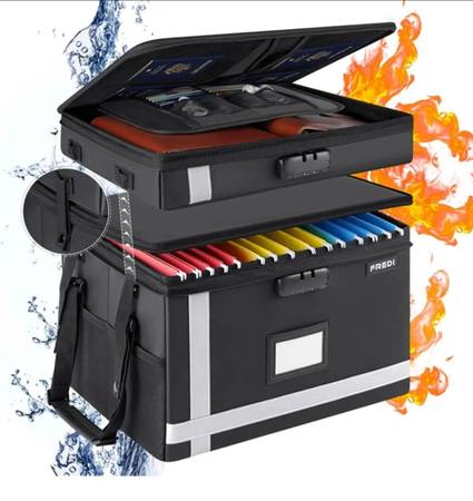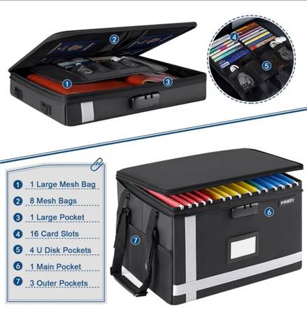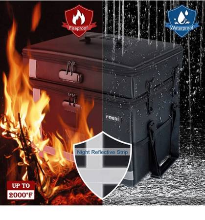 Fireproof Document Box with Double Lock 2 Layer File Storage Case Water-resistant File Cabinet Portable Organizer Bag Collapsible with Reflective Strip for Letter Legal Size Folder Passport Laptop...